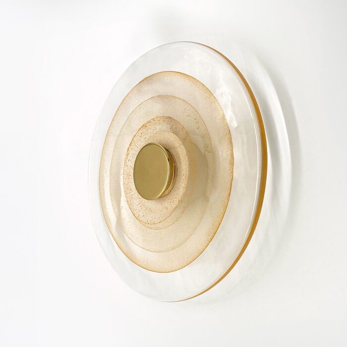 This wall light is made of aluminium, iron and glass that is designed and engineered to catch and refract light in a mesmerising way.