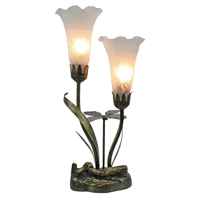 Two Branch Upward Tiffany Lily Table Lamp White - N039-2-W