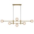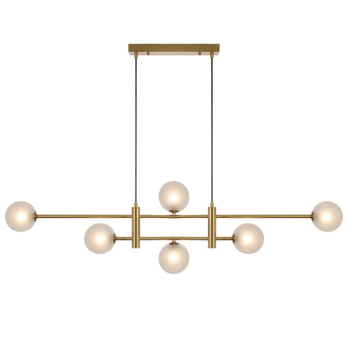 Offered in refined black and antique gold finishes, this pendant displays six lights elegantly positioned along a sleek central rod, making a striking visual impact.