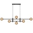 Offered in refined black and antique gold finishes, this pendant displays six lights elegantly positioned along a sleek central rod, making a striking visual impact.