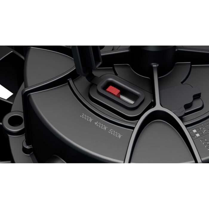 - Power/lumen settings at 3000K : 100W/13000lm, 150W/18000lm, 200W/22000lm, 4000K : 100W/14500lm, 150W/21000lm, 200W/26000lm, 5000K : 100W/14000lm, 150W/19500lm, 200W/24000lm.