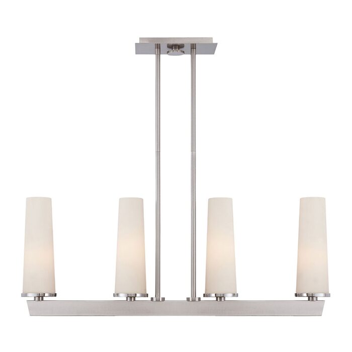 Inspired by contemporary London apartments, the Chelsea Loft collection is a very sleek minimalistic fixture which is finished in Brushed Nickel and features tall opaque glass shades.