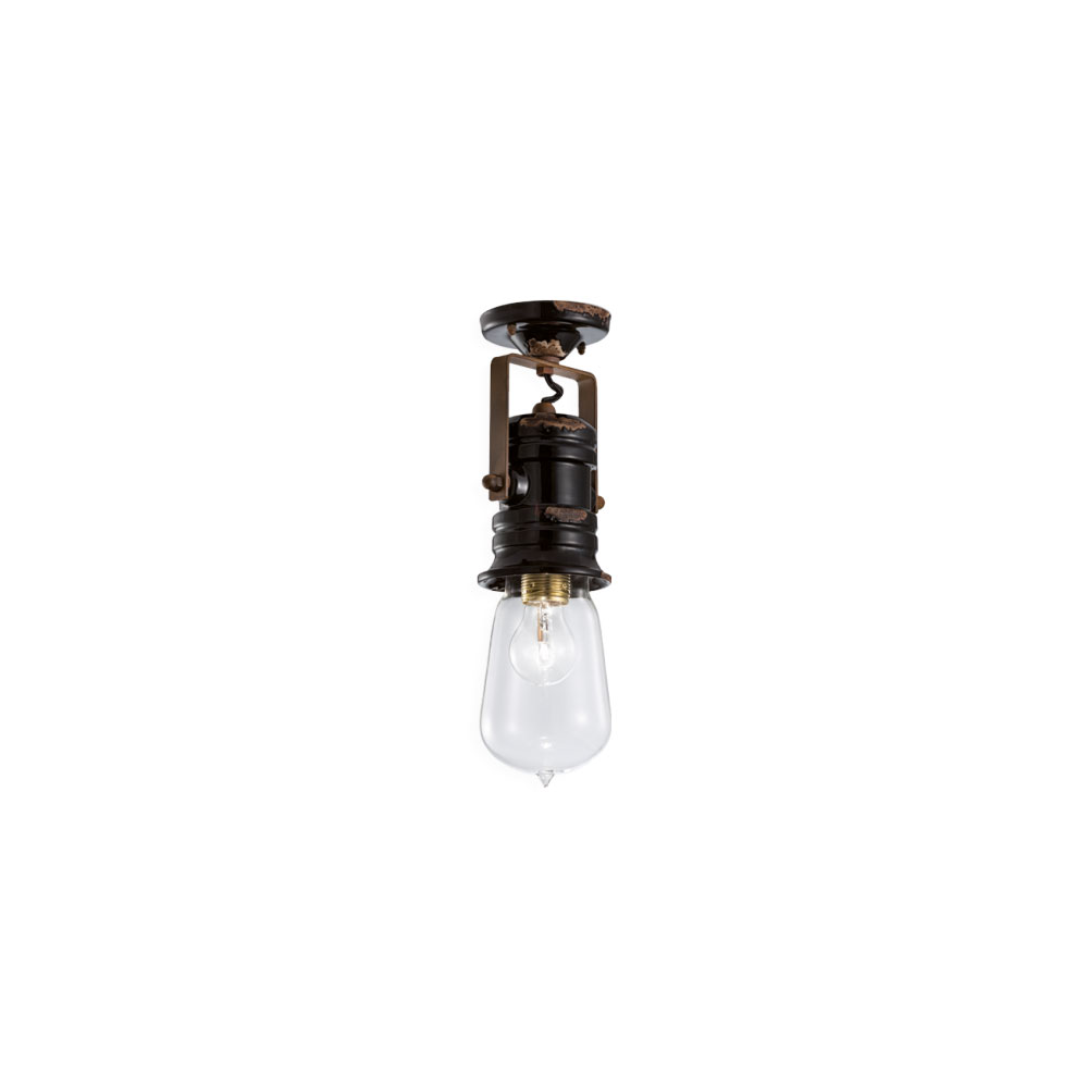 The Urban Semi Flush Mount Light in Vintage Black by Ferroluce blends industrial charm with a sleek design.