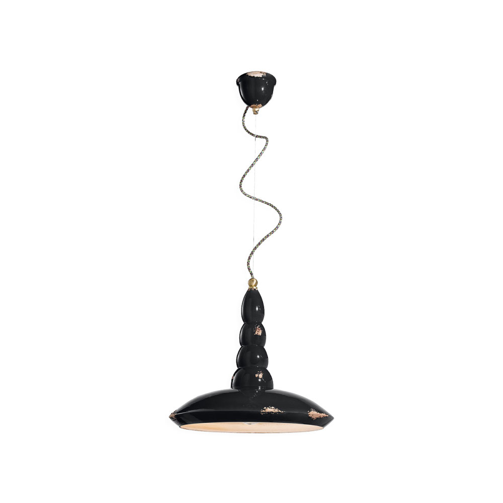 Vague-Vintage Pendant Light by Ferroluce is crafted from ceramic and finished in vintage black, bringing elegance and character to any space.