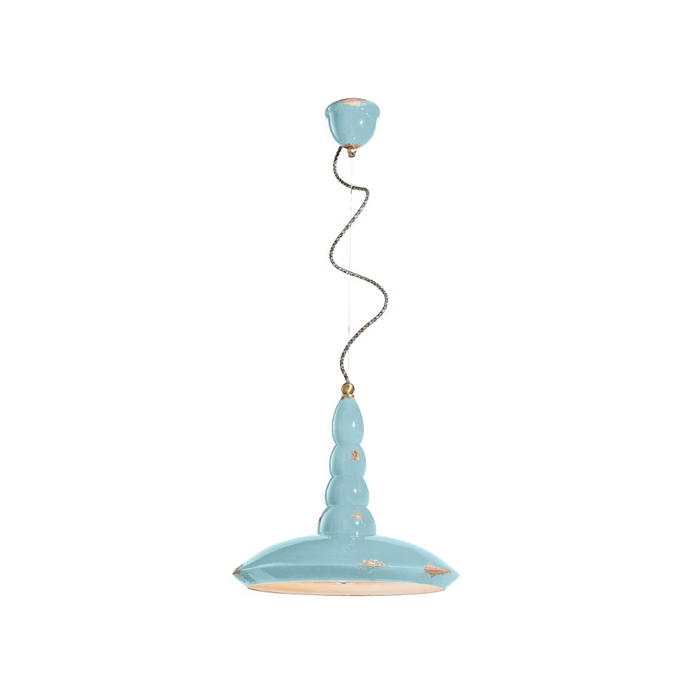 Vague-Vintage Pendant Light by Ferroluce is crafted from ceramic and finished in vintage light blue, bringing elegance and character to any space.