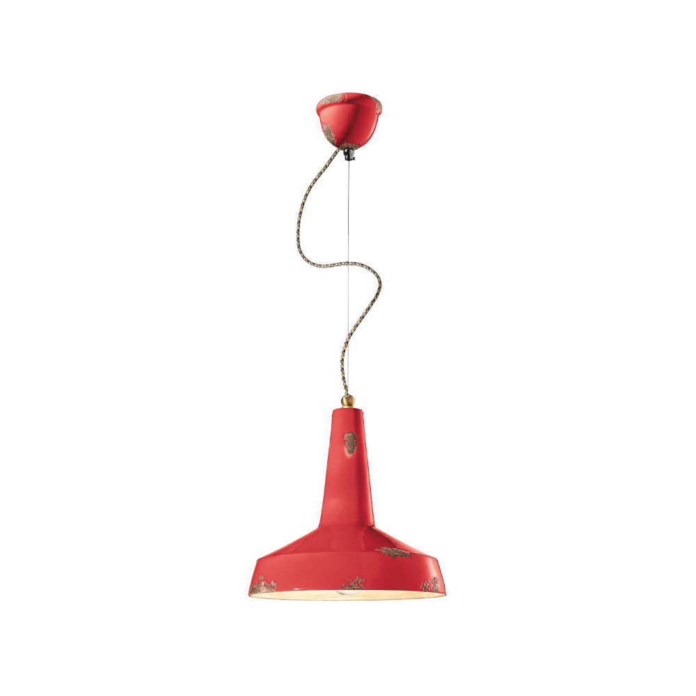 Vague Vintage 350mm Pendant in Vintage Red by Ferroluce blends classic charm with a subtle retro touch.