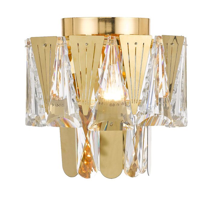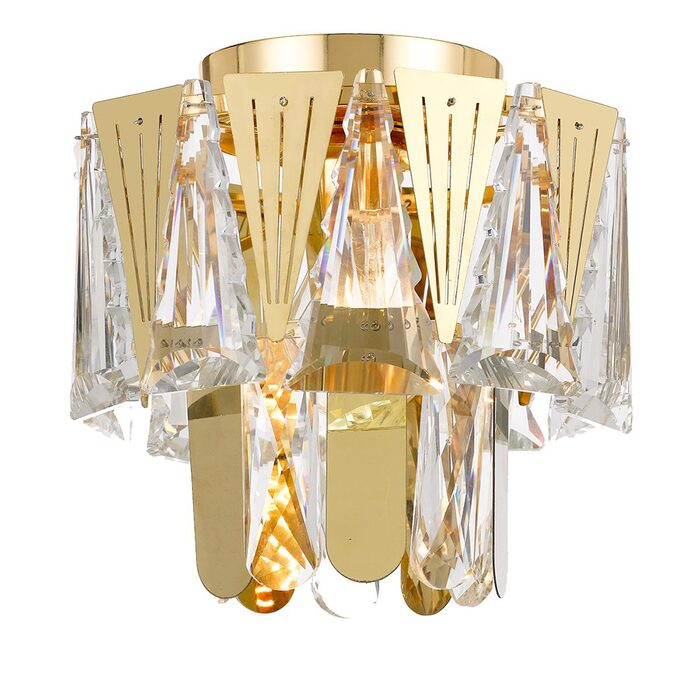 It features tiered layers of clear crystal accents that create a curtained effect and deliver sparkling illumination.