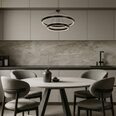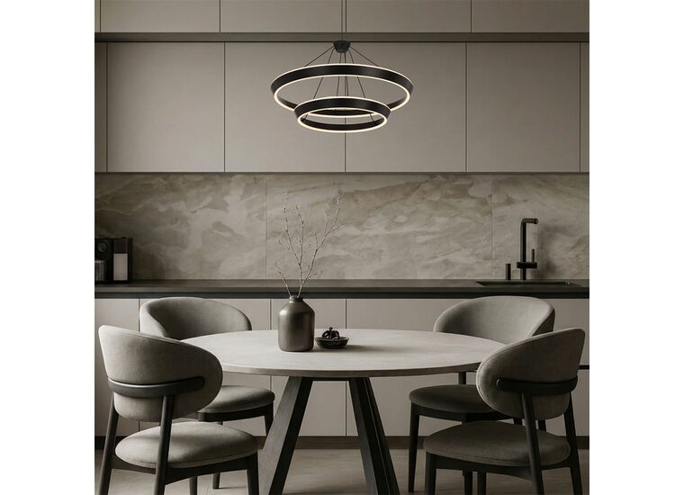 The Vantel pendant range showcases a sleek, contemporary design defined by elegant circular forms that make a striking statement in modern interiors.