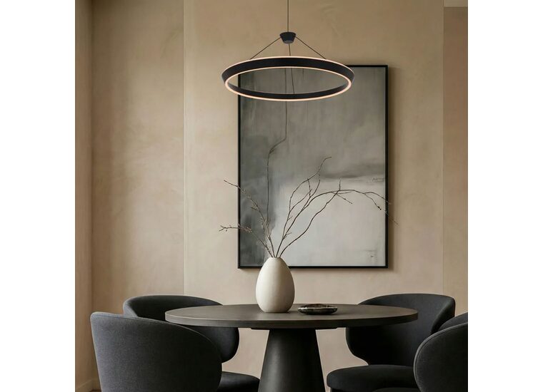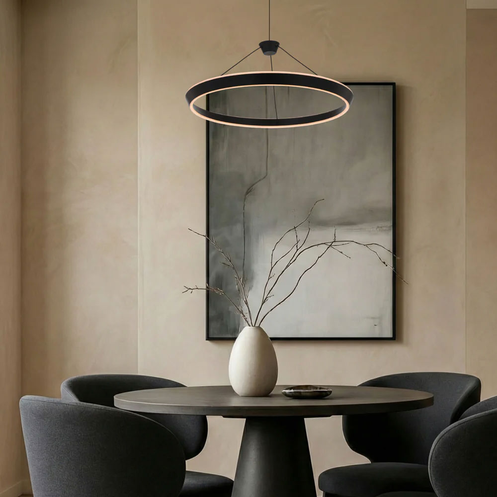 The Vantel pendant range showcases a sleek, contemporary design defined by elegant circular forms that make a striking statement in modern interiors.