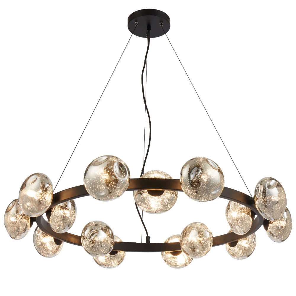 The Varlin range features a striking design with mirrored glass shades accented by delicate speckles, creating a unique and atmospheric light output.