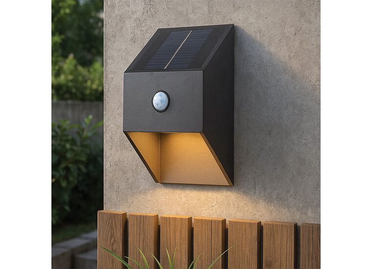 This modern wall lamp works on solar energy and has an internal motion sensor so that it turns on immediately as soon as movement is detected.