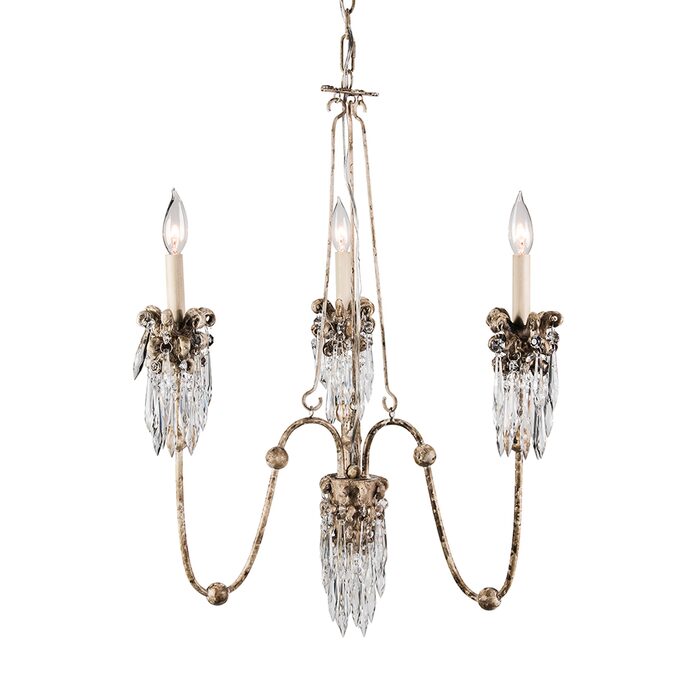 Capturing the elegance of a bygone time, the Venetian range features a hand-painted Beige Patina with clusters of cut-glass crystals hanging from carved bobeches.