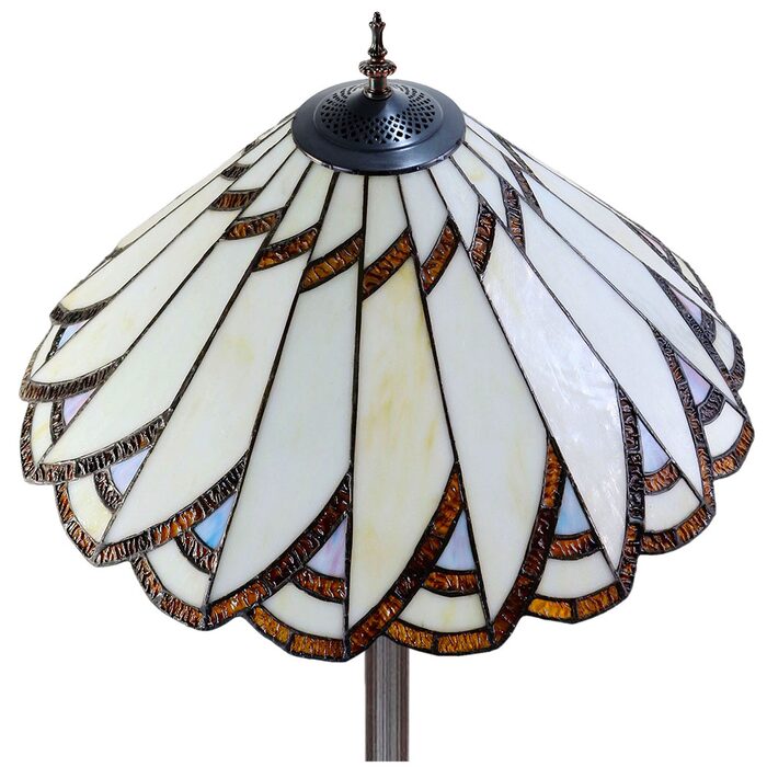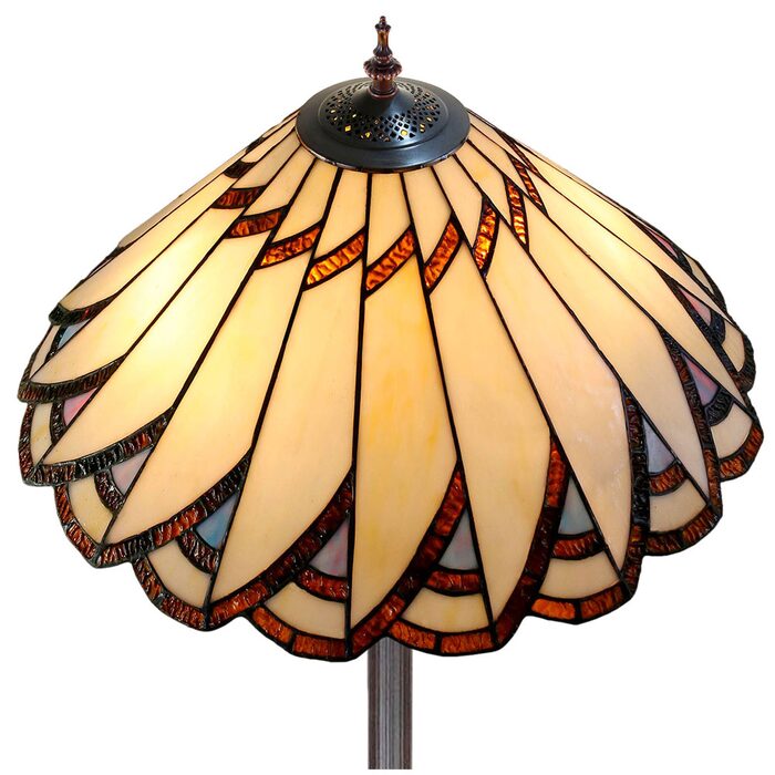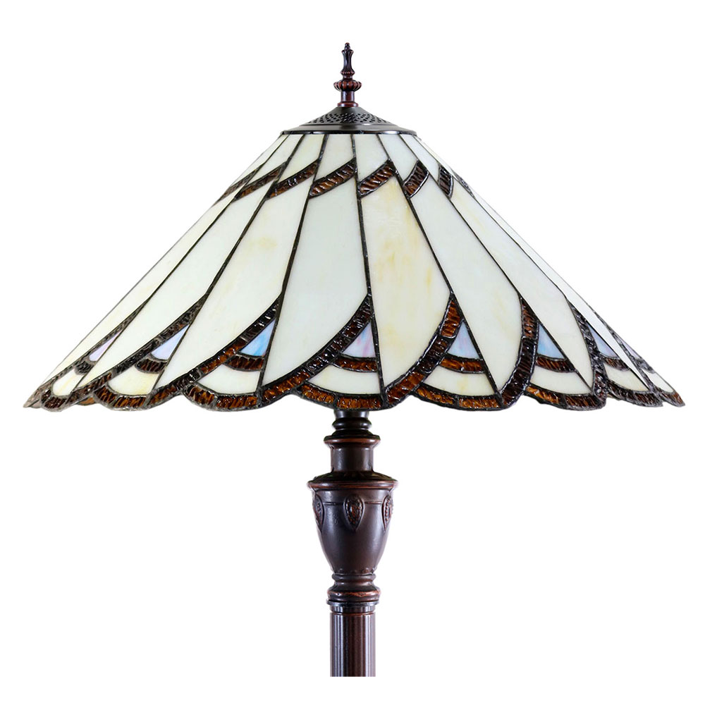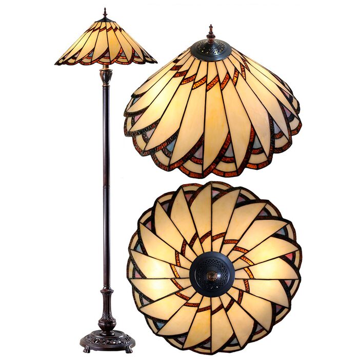 This beautiful floor lamp features a handcrafted, genuine design on stained art glass shade combined with beautiful base and frame made of resin.
