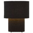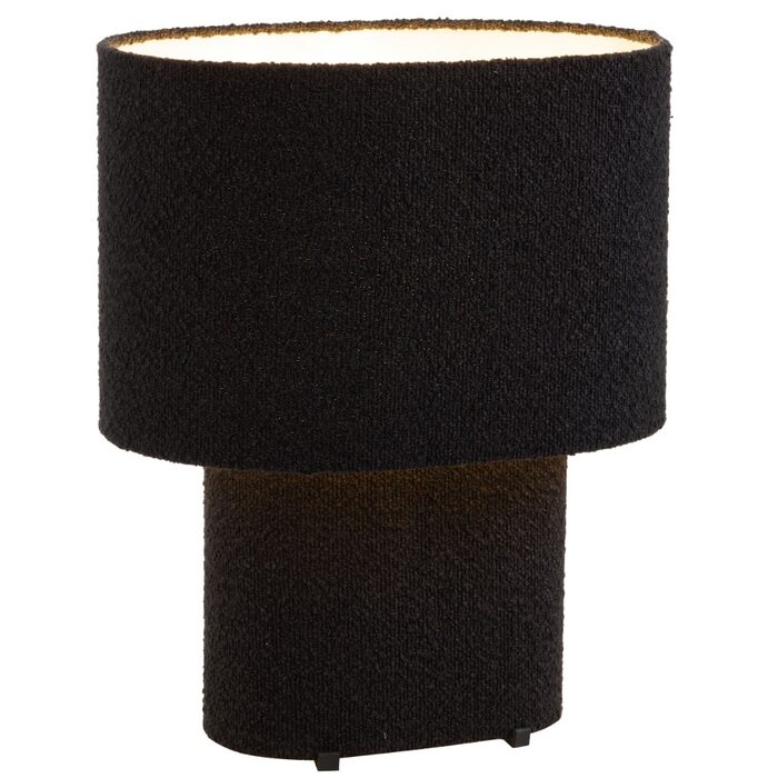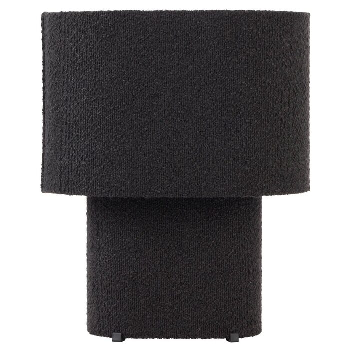 The Verso table lamp features a contemporary design with an oval-shaped base and shade, both covered in a luxurious boucle fabric that adds warmth and tactile interest.