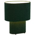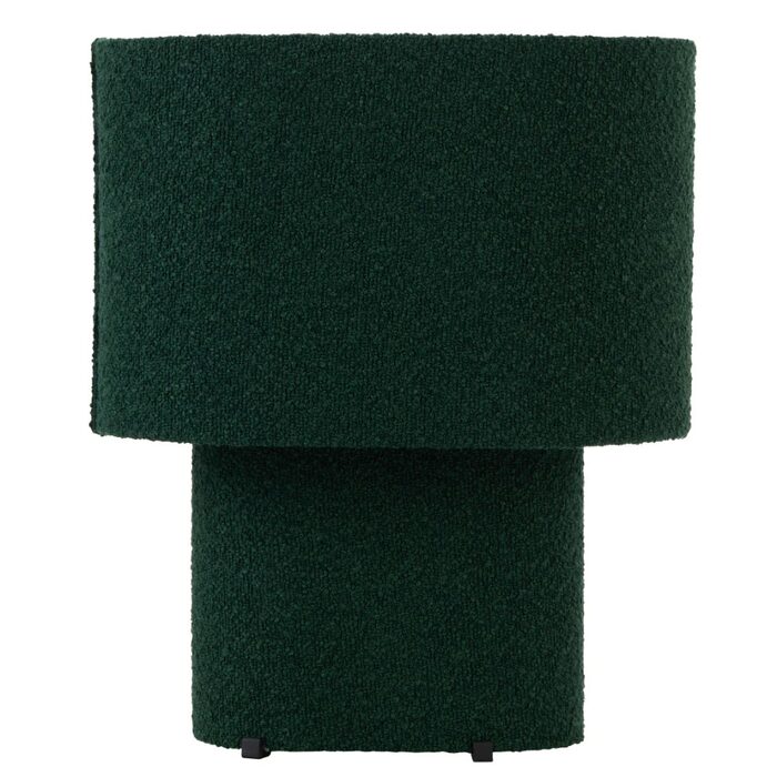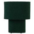 The Verso table lamp features a contemporary design with an oval-shaped base and shade, both covered in a luxurious boucle fabric that adds warmth and tactile interest.