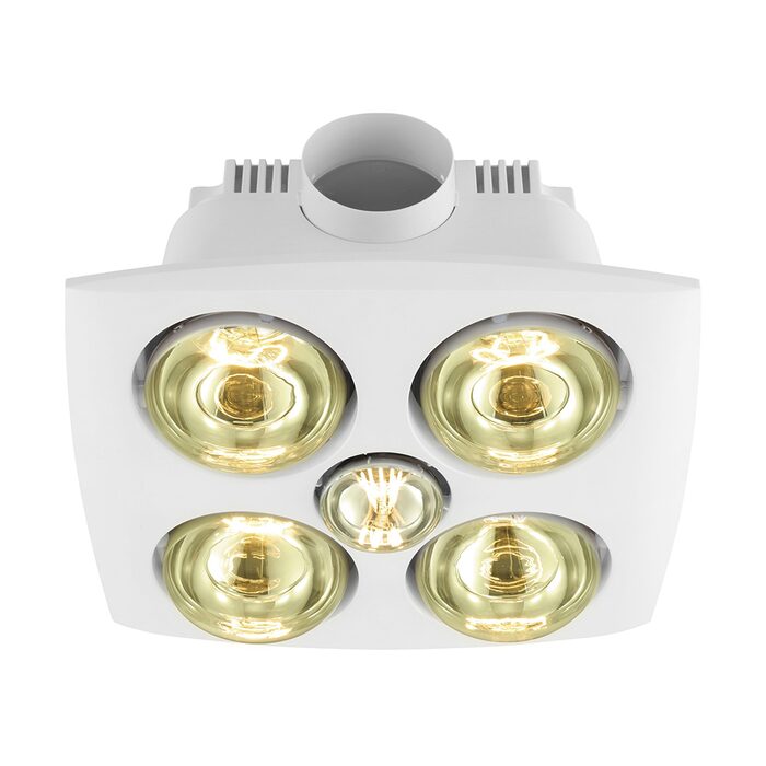 Good heating and lighting is essential to every bathroom. As a result, each Vesuvius 4 Light 3 in 1 Bathroom Heater comes with 4 x 275W infrared heat lamps, providing instant heat to your bathroom or space.