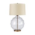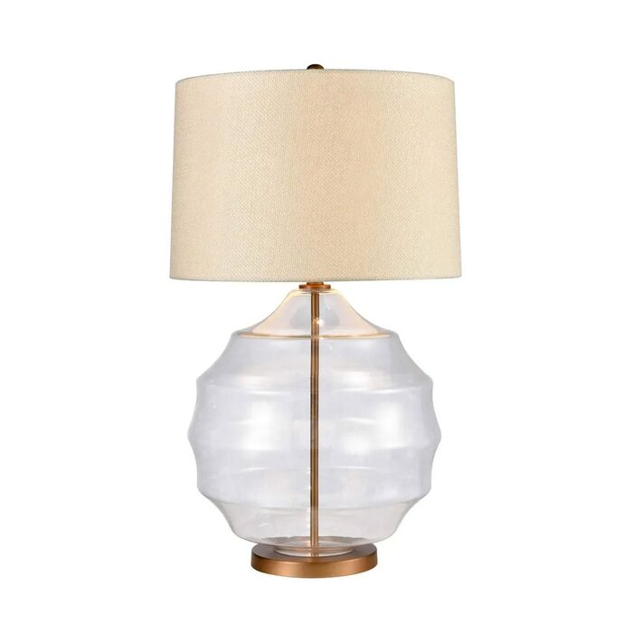 Crafted with a stylized hive-shaped base made from clear glass and accented with brushed gold fixtures, this lamp exudes sophistication and charm.