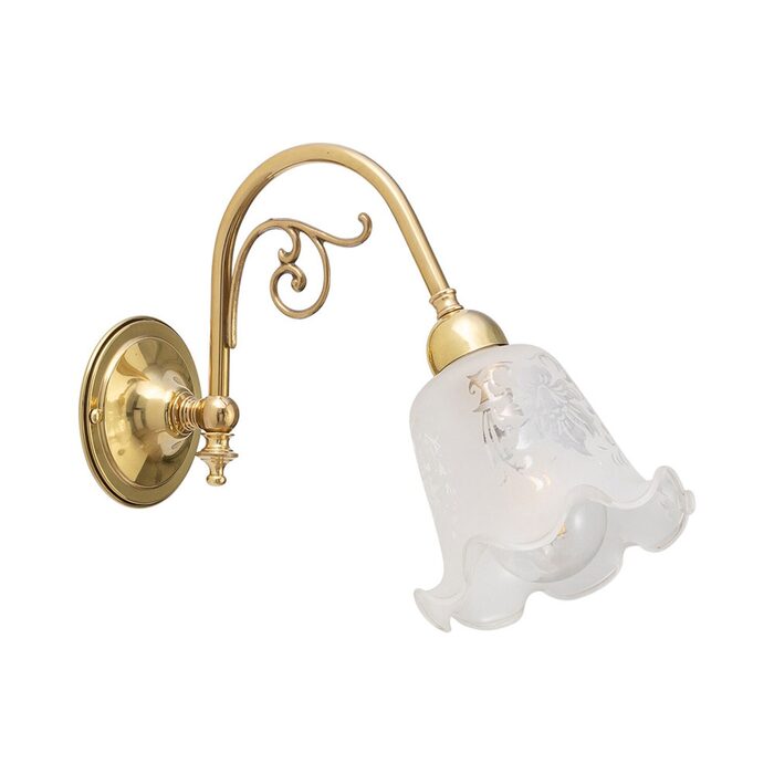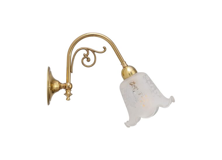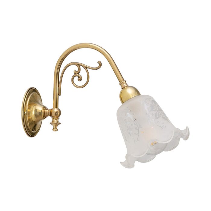 Traditional solid brass wall light with an downward facing etched glass.