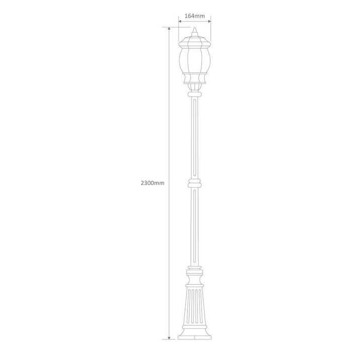 Vienna 1 light 2.3m post light, die-cast aluminium body and moulded acrylic lens. Made in Italy, assembled and powder coated in Australia.