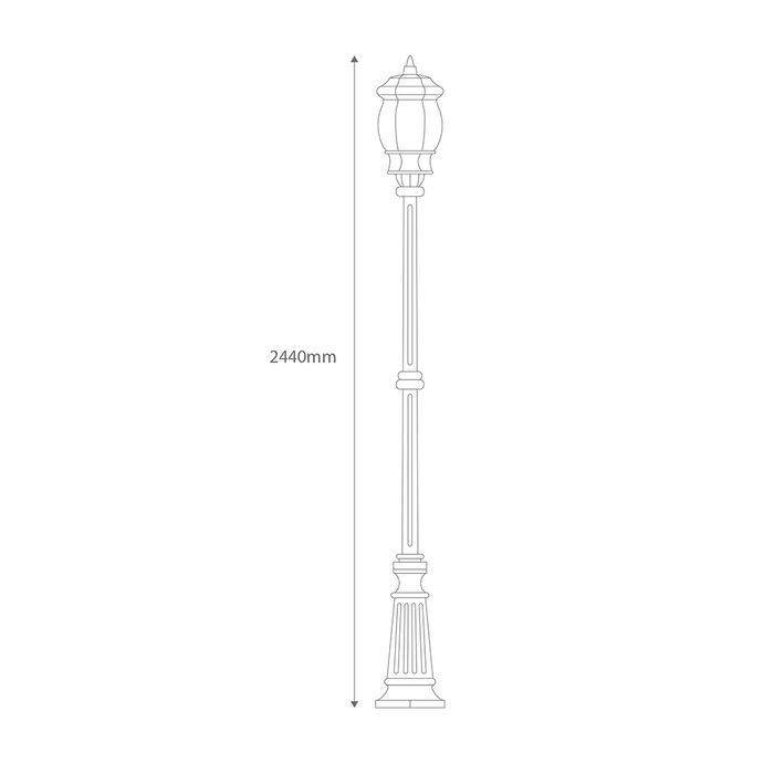Vienna Large 1 light 2.4m post light, die-cast aluminium body and moulded acrylic lens. Made in Italy, assembled and powder coated in Australia.
