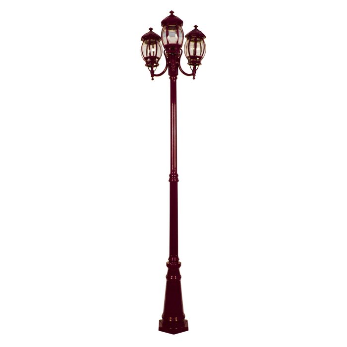 Vienna Three Head Curved Arm Tall Post Light Burgundy - 15976