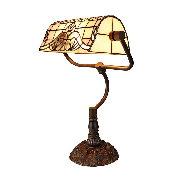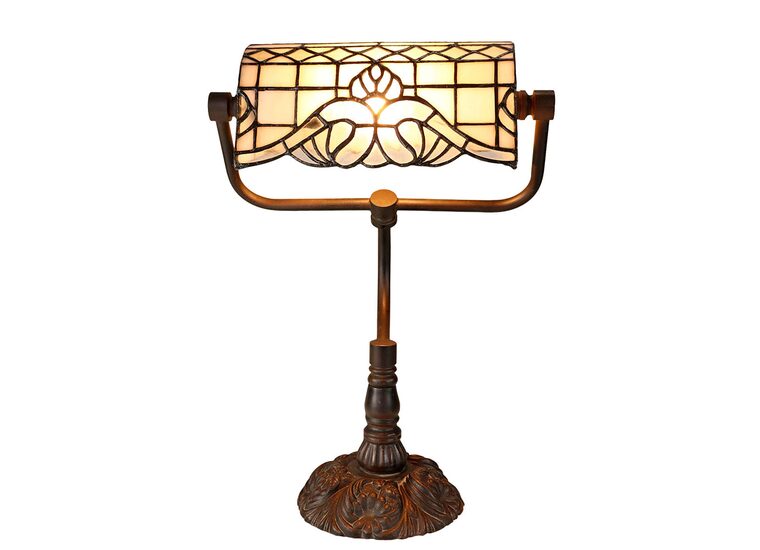 This elegant lamp features a beautifully crafted Tiffany-style stained glass shade with intricate patterns and rich colours, inspired by the timeless elegance of Vienna.