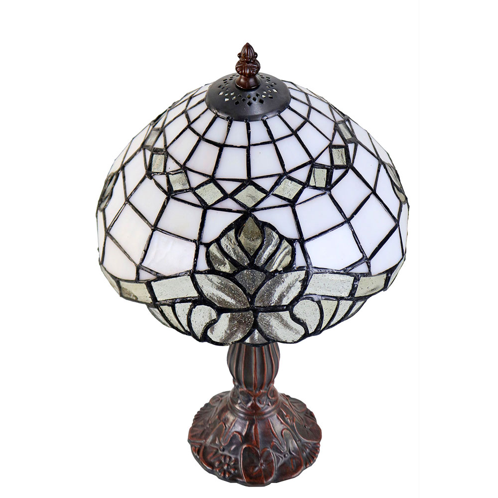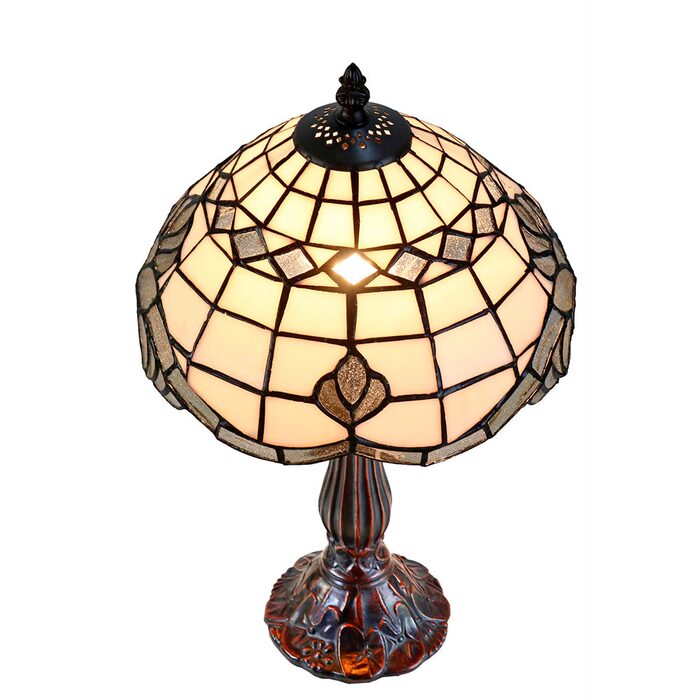 This beautiful table lamp features a handcrafted, genuine Vienna design on stained art glass shade combined with a resin base, carved in a traditional design with a brown neutral colour to juxtapose the lively art glass shade for maximum impact.
