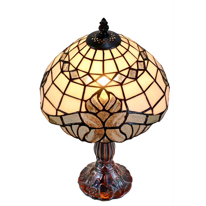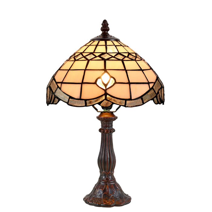 The Vienna lamp is a colourful Tiffany style lamp that combines many pieces of art glass to create a stunning and complex design.