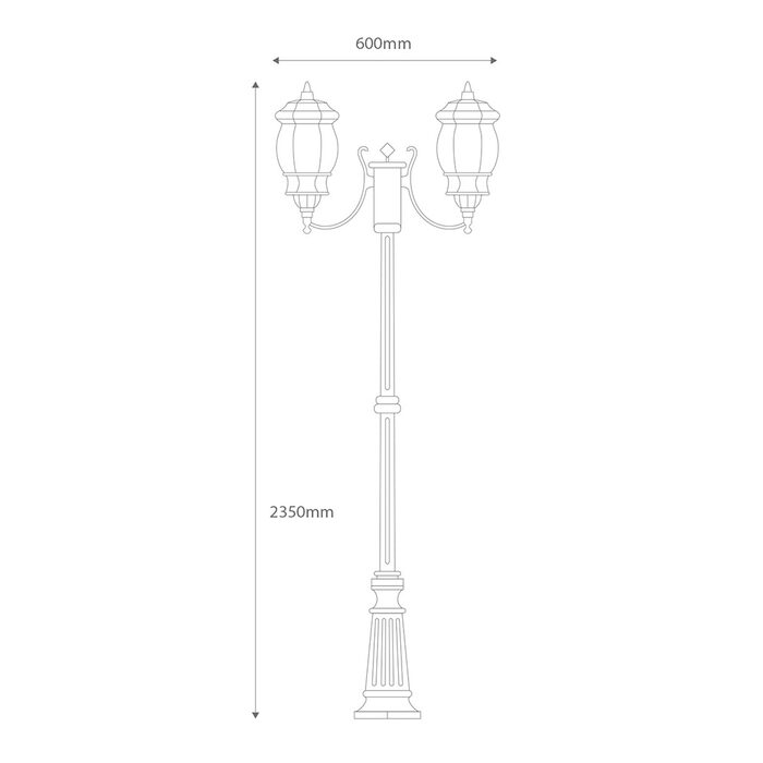 Vienna 2 light 2.35m curved arm post light, die-cast aluminium body and moulded acrylic lens. Made in Italy, assembled and powder coated in Australia.