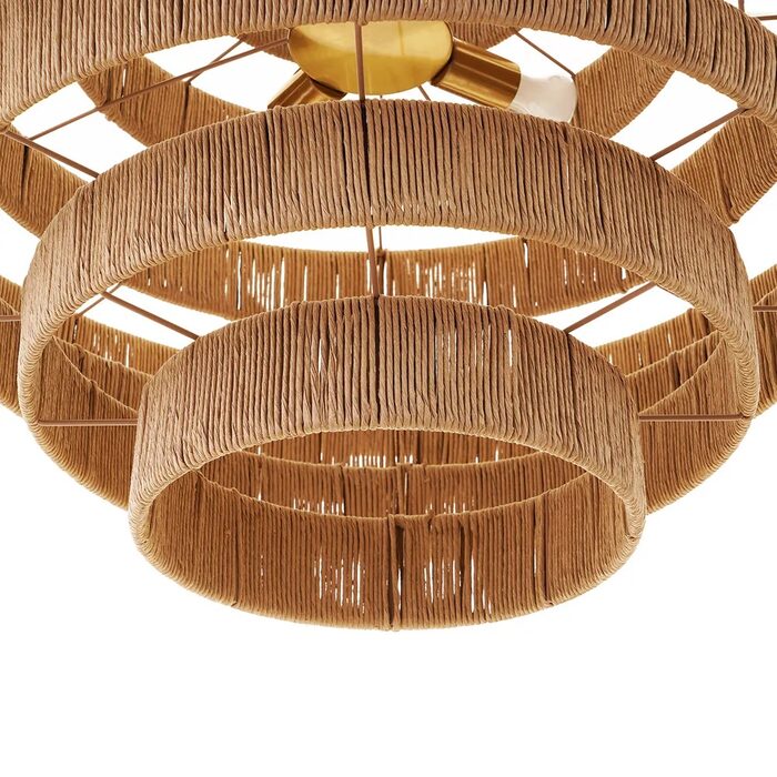 Finished with an elegant brass coloured chain and fittings for a touch of modern luxe, the Vilano rope wide 7 tier pendant creates a stunning centrepiece for use in any domestic or commercial setting.