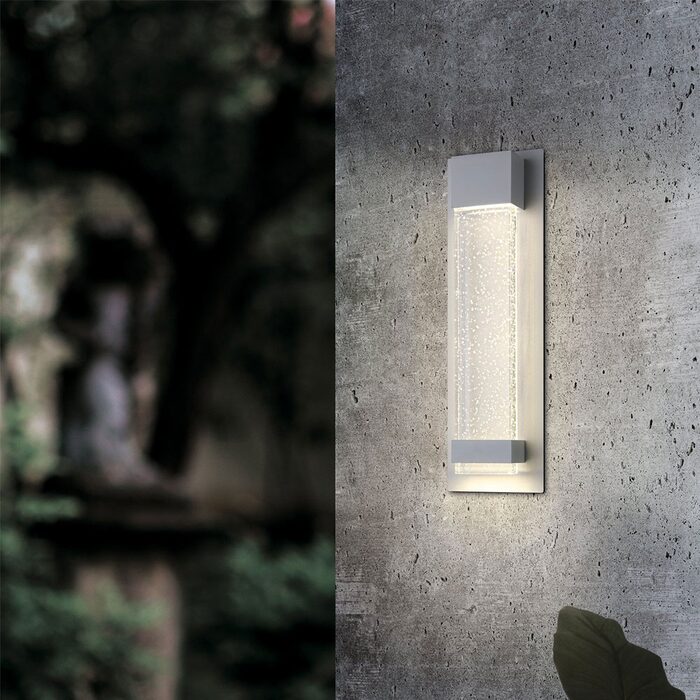 This outdoor luminaire of the VILLAGRAZIA series is powder-coated in white structure finish and has a solid, polished glass body with air inclusions. The LED board with 680 lumens radiates into the glass body and creates an impressive play of light by refracting light in the air inclusions.