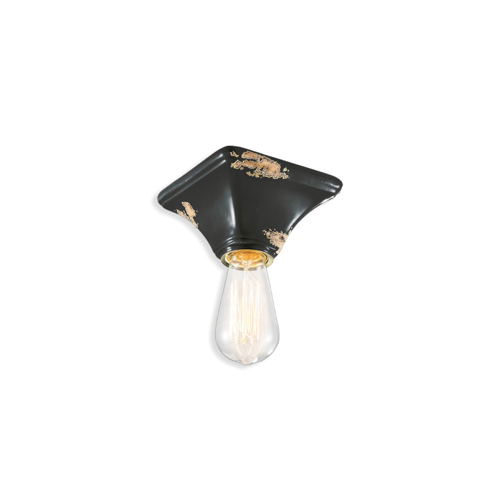 The Vintage 150mm Flush Mount Light in Vintage Black by Ferroluce brings a timeless industrial charm.
