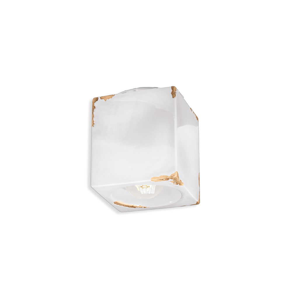 Vintage 120mm Flush Mount Light in Vintage White by Ferroluce, featuring a timeless design with a glossy finish.