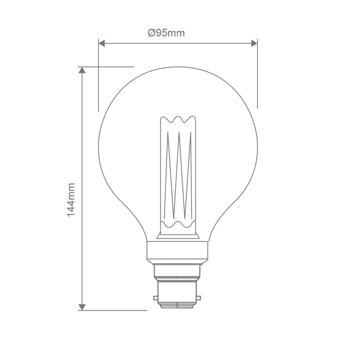 Further energy efficiency control is made possible by its dimming ability, allowing you to regulate its brightness and its electricity consumption. Available in Banana (T30), Mini Banana (T45), Pear (ST64), G95 Sphere and G125 Sphere. Available in ES (E27) and BC (B22) base options.