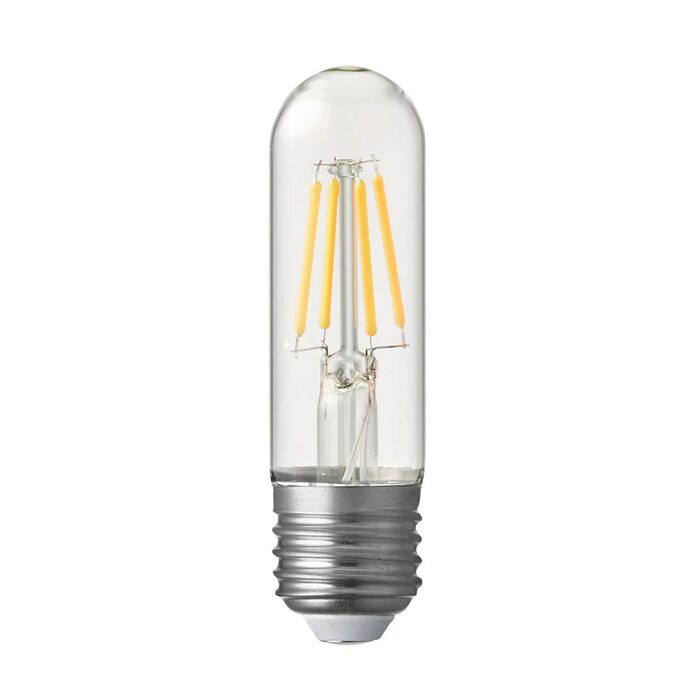 The 4-watt clear Tubular Dimmable LED Light Bulb in warm white 2700 Kelvin (E27/ Edison Screw ) is featuring LED filament technology, inspired by the classic engineering of the incandescent bulb.