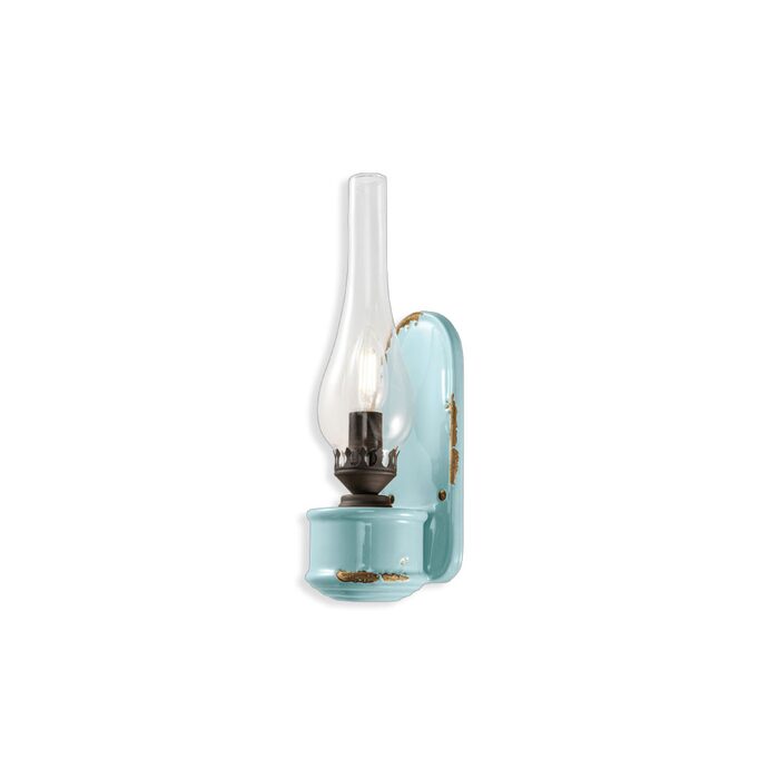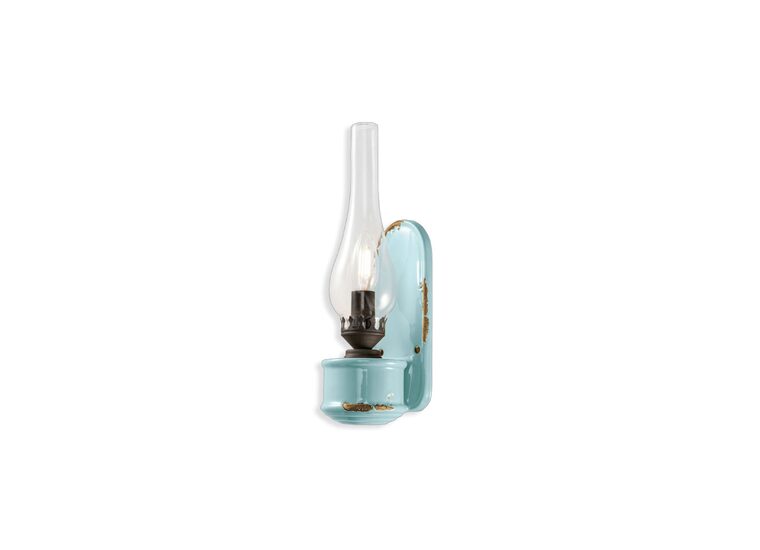 The Vintage 100mm Wall Light by Ferroluce features a ceramic body in a charming vintage light blue finish.