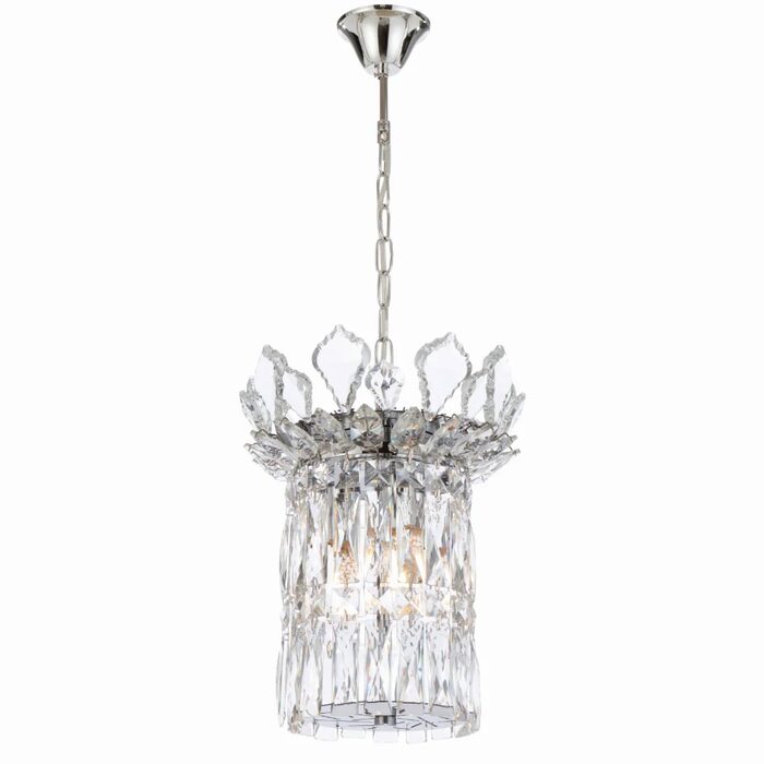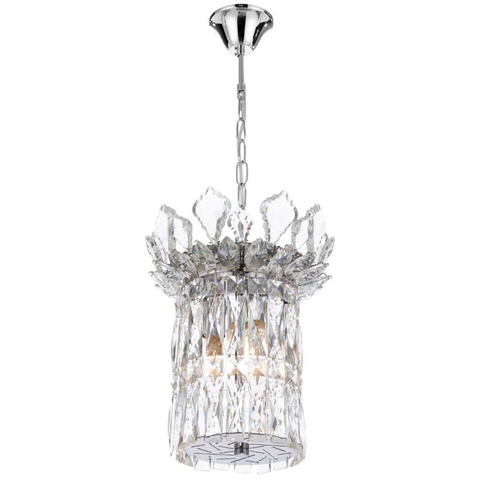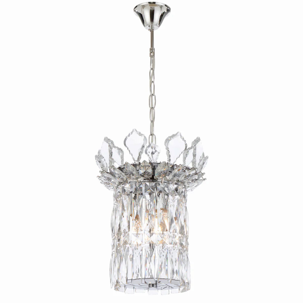 The Virell range showcases elegant chandelier‑style pendants and coordinating wall lights, available in chrome or gold finishes and adorned with sparkling crystal accents.