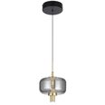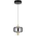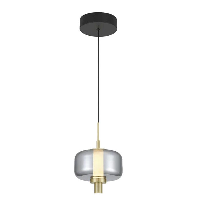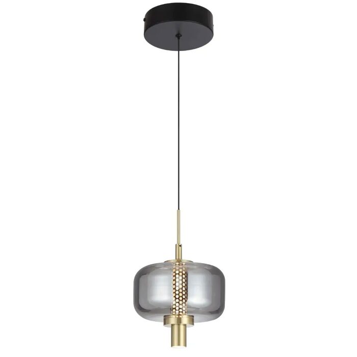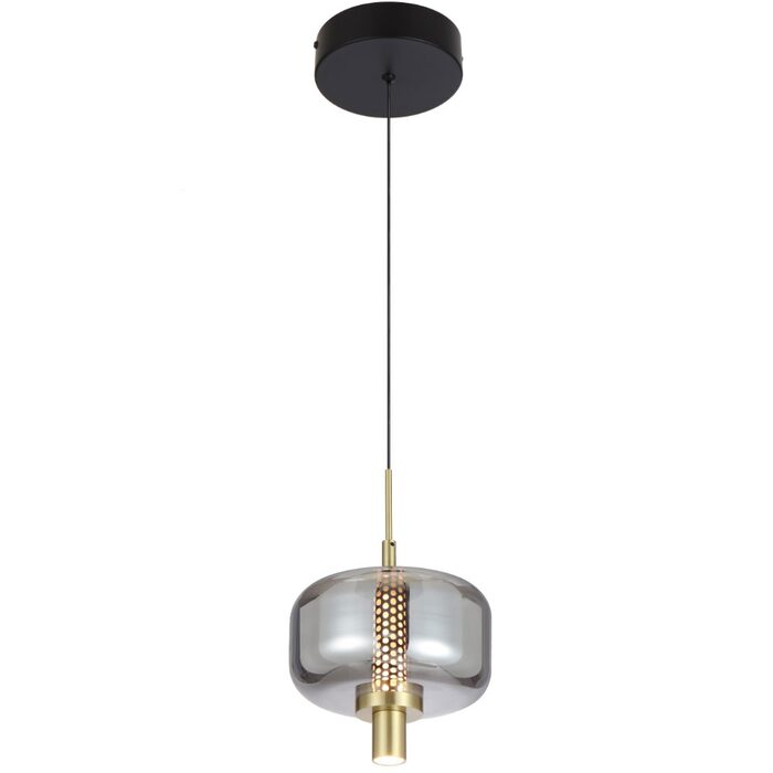 Designed with a contemporary touch, it features a sleek matt black finish with elegant gold accents and a black smoke glass shade.