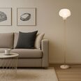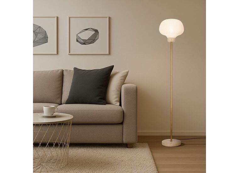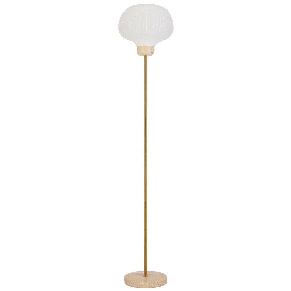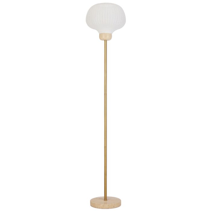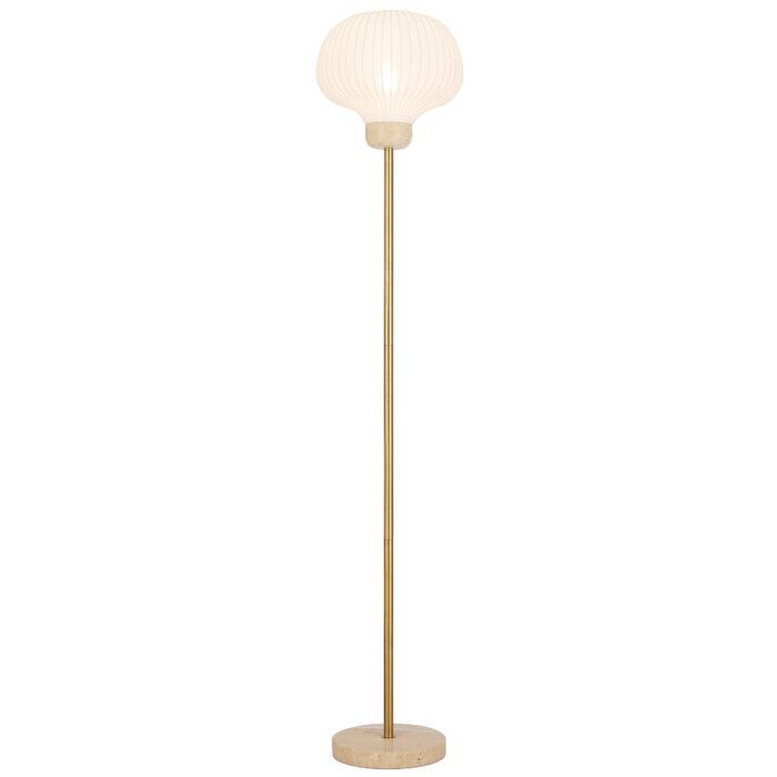 The Vybor range, available in both a floor and table lamp, showcases beautiful neutral tones of beige and ivory crafted from travertine and fabric.