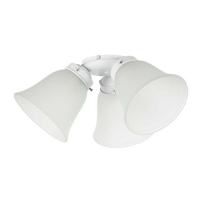Waikiki 3 light flush fan light kit is fitted with glass shades, and a pull chain to suit all the Waikiki ceiling fans. Suitable for 3 x E27 base compact globes, in either energy saving LED, or energy saving halogen globe options.