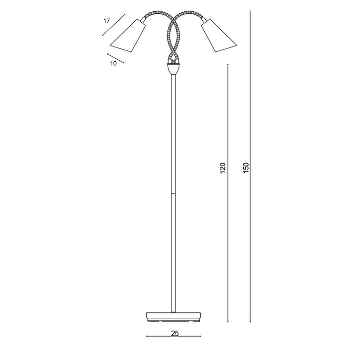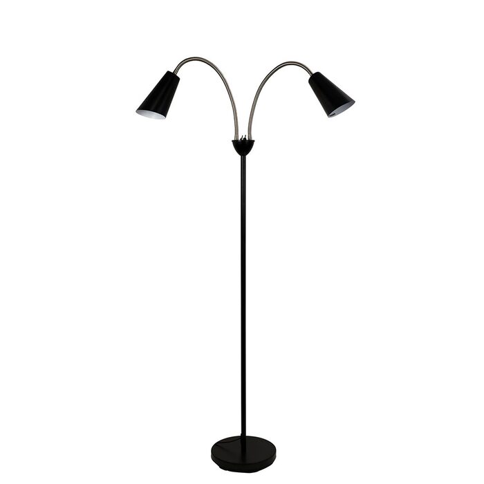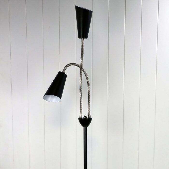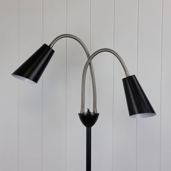 WALT is a mid-century styled twin floor lamp featuring flexible goose-neck arms with metal shades. WALT’s individual switches are located on the central hub, for easy access to operate each light seperately.