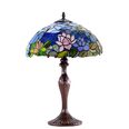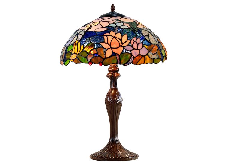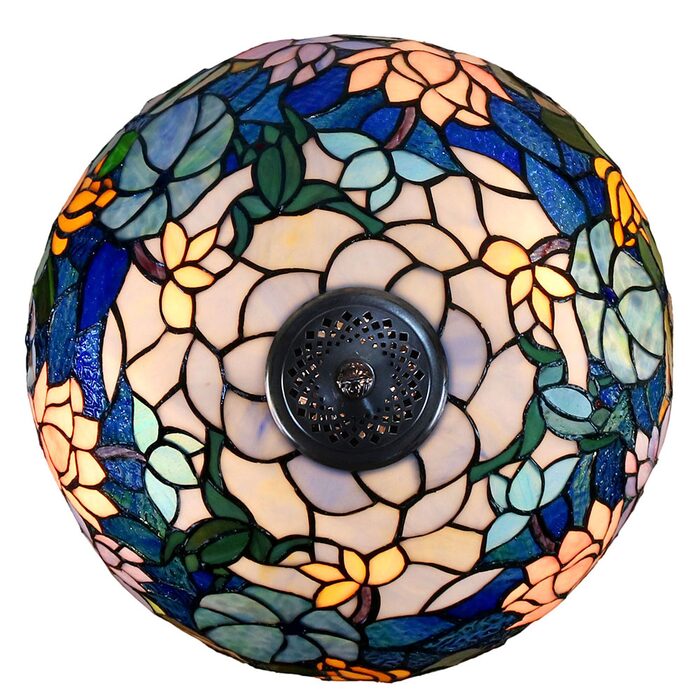 Handcrafted with vibrant Tiffany glass, it features delicate water lily motifs.
