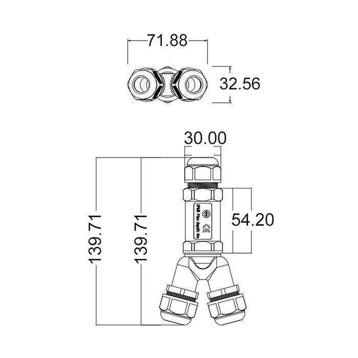 Connector / 3 Way Y Shape Cable Extension 3Pin Terminal IP68 W/PROOF 32A 450VAC