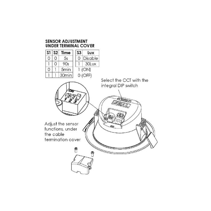 - Easy selectable colour temperature with an inbuilt DIP switch, 3000K/4000K/5700K and microwave sensor