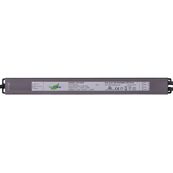 The Havit HV9661-12V100W is a 100W, 12V DC constant-voltage, IP66-rated, waterproof 2-in-1 dimmable LED driver (TRIAC and 0-10V) suitable for indoor/outdoor residential and commercial use.