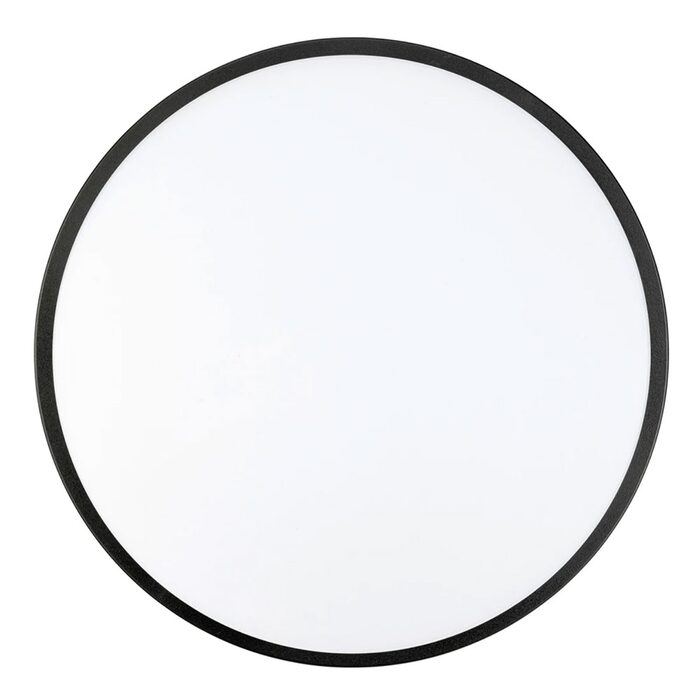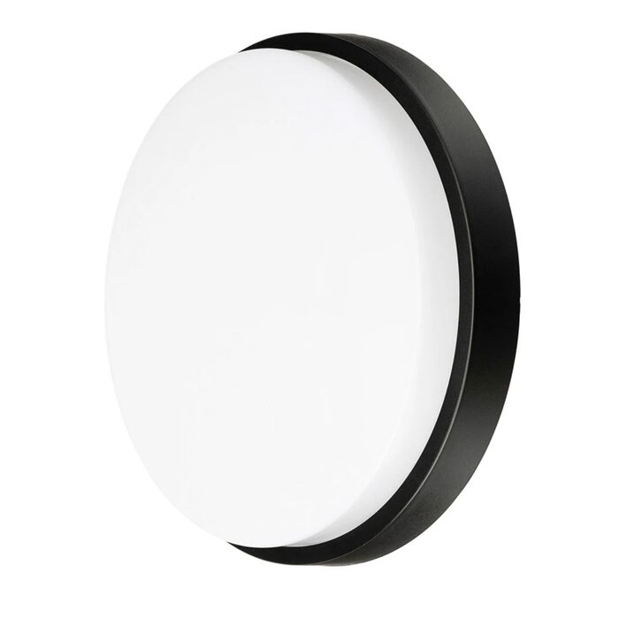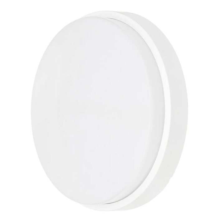 A modern, slimline round bunker wall light that illuminates exteriors with bright, even white light.