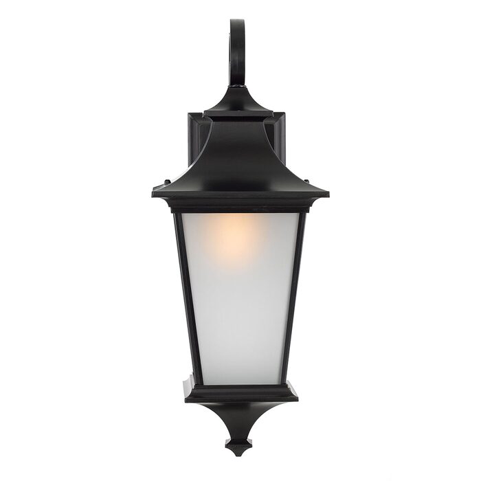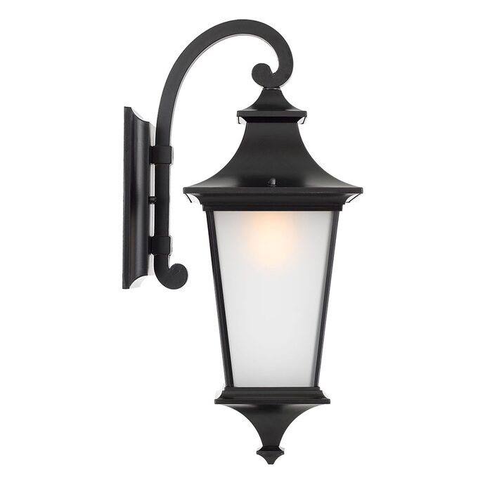 The Westin features a subtle scroll arm to suspend the neo-classic head. Finished in flat black powder coat with acid frost glass providing a traditional illumination.