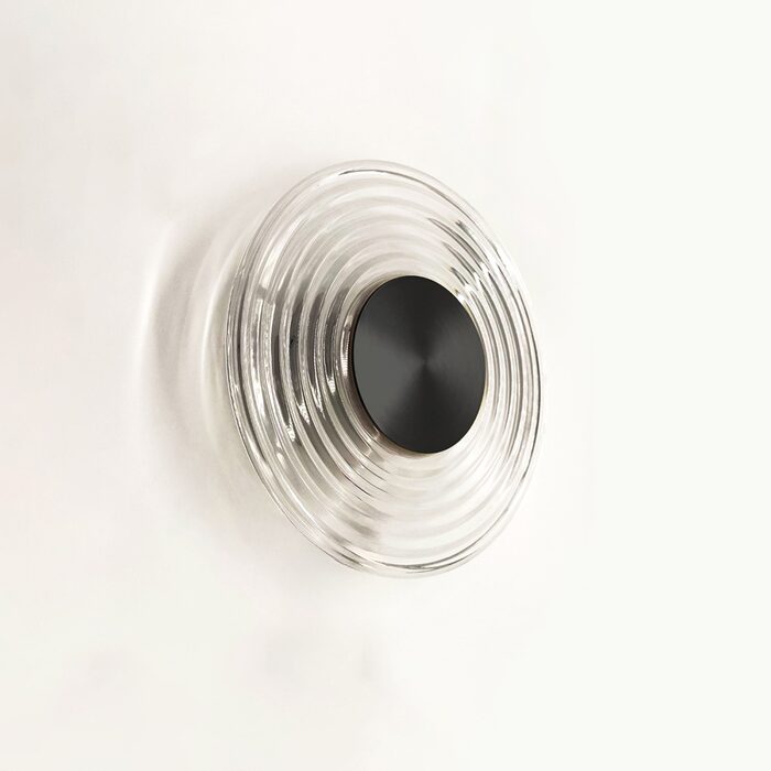 This wall light is made of iron and glass that is designed and engineered to catch and refract light in a mesmerising way.