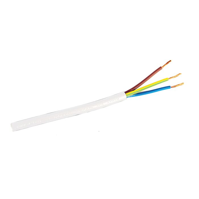 White 3-Core circular PVC flex, as used in many decorative light fittings. Sold by the metre.