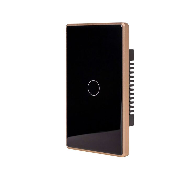 The Havit HV9220-1 is a single-gang smart touch switch with a premium black tempered-glass face and elegant gold trim.